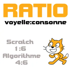 TP informatique avec Scratch : réaliser un programme donnant le ratio voyelles:consonnes d’un mot fourni par l’utilisateur.