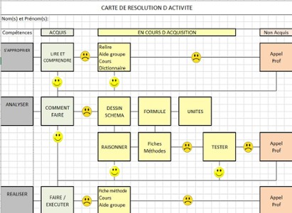 Utilisation d'une carte de suivi de la résolution d'une activité afin de favoriser l'auto-évaluation des élèves.